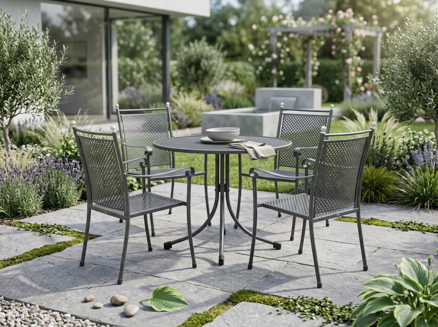 Das Excelsior-Universal Gartenmöbel-Set wird aus hochwertigem Stahl gefertigt, was für maximale Stabilität und Langlebigkeit sorgt. Die Oberfläche ist mit Thermosint® beschichtet und präsentiert sich in elegantem Eisengrau. Diese Beschichtung verleiht dem Set nicht nur eine ansprechende Optik, sondern bietet auch zusätzlichen Schutz vor äußeren Einflüssen.