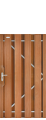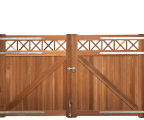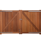 Die Hartholzpfosten werden bei diesem Torsystem direkt und damit ohne Verwendung von Eisenankern einbetoniert. Die Torflügel werden im geöffneten und geschlossenen Zustand durch Stützpfosten mitgetragen. Diese sollten ebenfalls in Beton gesetzt werden.